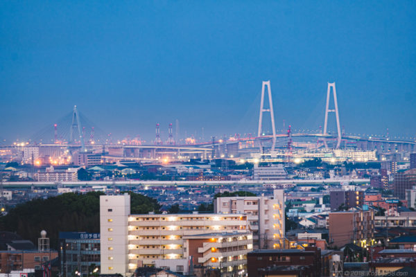 この写真は夜明けに撮影してますが、名港トリトンの夜景はライトアップを行っている時間に撮影するのがおすすめです。