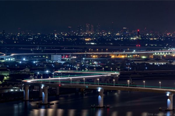 窓まで遮るものがなくカメラをガラスのスレスレまで近づけることができるため、ガラスへの映り込み対策さえできていれば、きれいな夜景を撮影することができます。