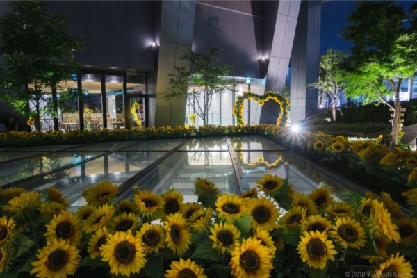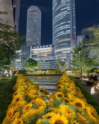 ひまわりが大粒なので存在感を出して、名古屋駅に続いているイメージで撮っています。