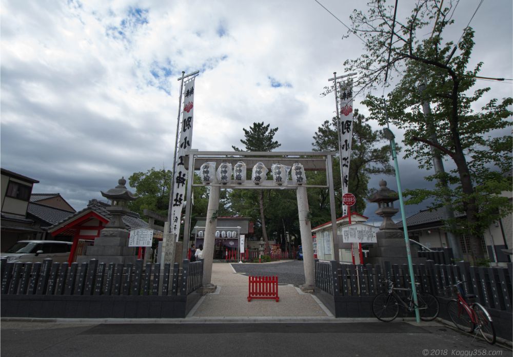 黒川樋門から900mほど北西へ向かうと別小江神社があり、夜なら和傘のライトアップも行っています。