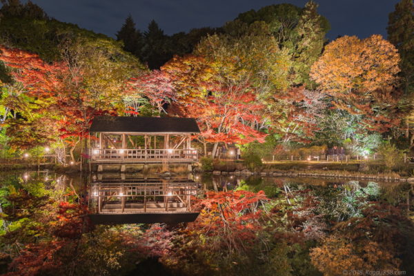 僕も三脚禁止のタイミングで撮影をしたことがありますが、明暗差が他の紅葉狩りスポットより東山動植物園のライトアップは大きいきがします。