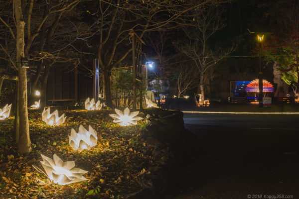 普段の東山動植物園の開園状態から開園時間が延長されて、日没からライトアップが始まります。