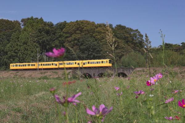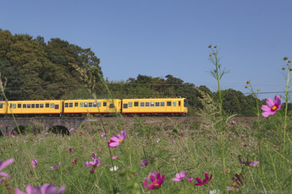 三重県いなべ市を走る三岐鉄道と鉄道沿いの休耕田に咲いている季節の花々(ひまわり、コスモス、彼岸花、そばの花)を撮影してきました。