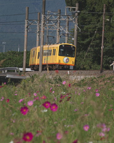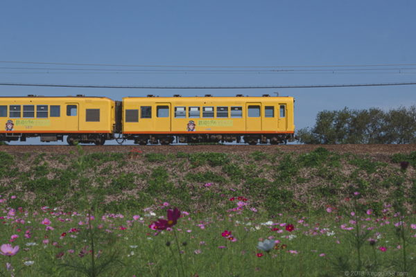 いなべ市のコスモス畑と三岐鉄道を撮影