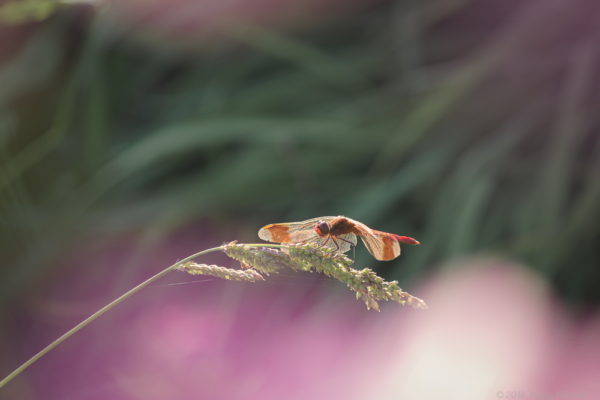 夕方だと赤いとんぼにさらにオレンジ味がまして、輝いて見えます。