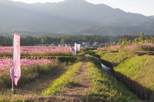 コスモスを絡めた風景がとても撮りやすい菰野町。