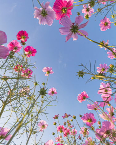コスモス畑に来るととりあえず、空を仰いでコスモスを撮影してしまいます。