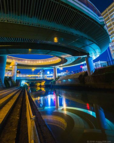 一度撮影に行くと、道路が渦を巻く姿が迫力あり、しかもリフレクションしていて、テンションがあがること間違い無しです。