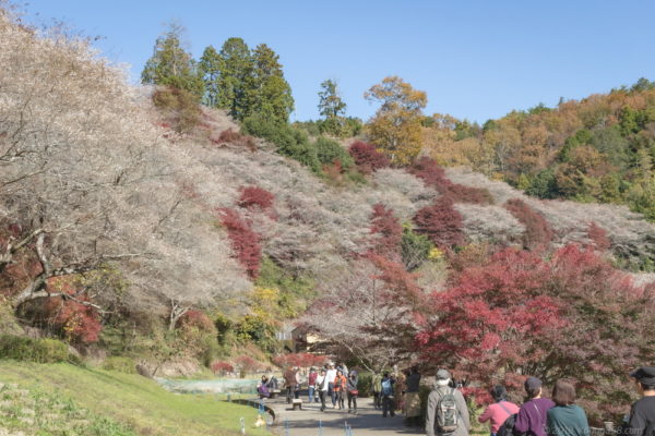 紅葉した赤い風景と淡い桜色の不思議な共演にうっとりとしてしまうスポットでした。