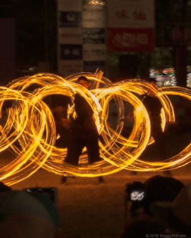 始まると30分ずっとファイヤートーチを行っているので、撮影していてもボリュームがありとても楽しかったです。
