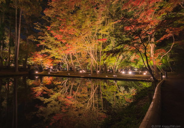リフレクションについて相当に研究や試行錯誤をしているようで、鏡のような池の逆さもみじはトップレベルに美しいです。