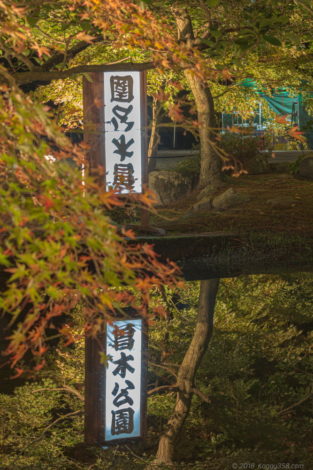 裏から見ると、「曽木公園」の文字が逆さまになっていて、池にリフレクションするようになっています。