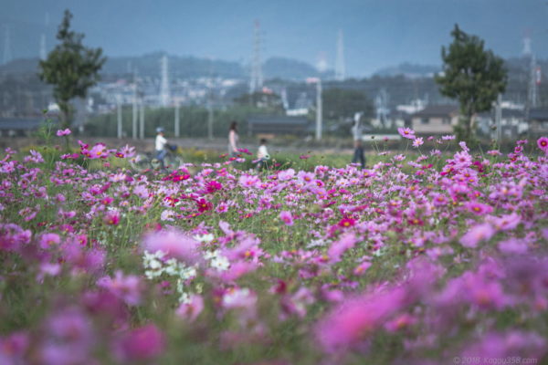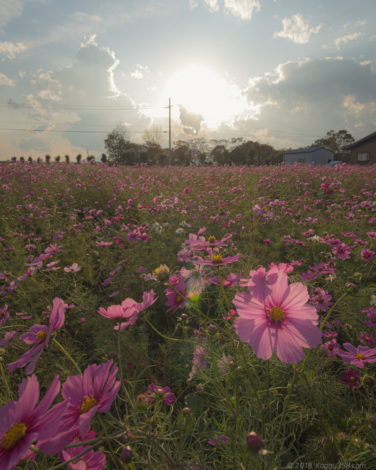 普段、僕はよく広角レンズを使用して風景を撮るのですが、今回はボケを利用したコスモス写真を撮ることをメインにしています。
