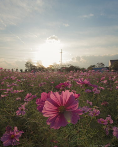 ただ群生しすぎているところだと、コスモスを痛めてしまうので、程よいところを探して撮影をしてみましょう。