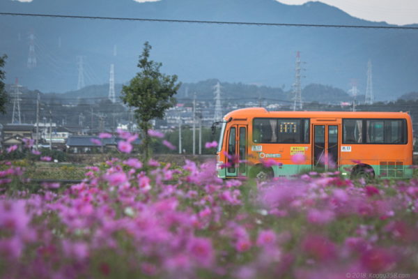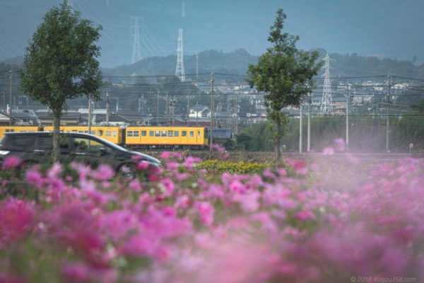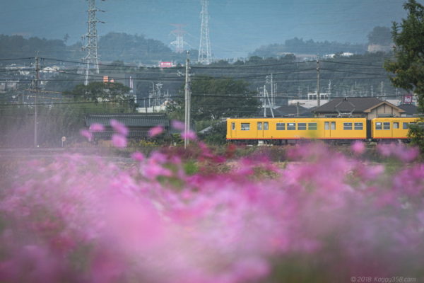 コスモスは小ぶりの花で、撮影が苦手という人も多いと思いますが三岐鉄道を絡めたり、アングルを工夫をすると綺麗に撮ることが出来ます。