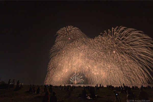 おかげで開始前に遠雷と靄が出ましたが、尺玉も隠れることなく特大花火もカメラに収めることが出来ました。