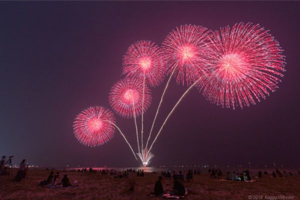 海岸沿いを船でギリギリまで近づいた状態で花火を水上に投げ込む海上花火なども有名です。