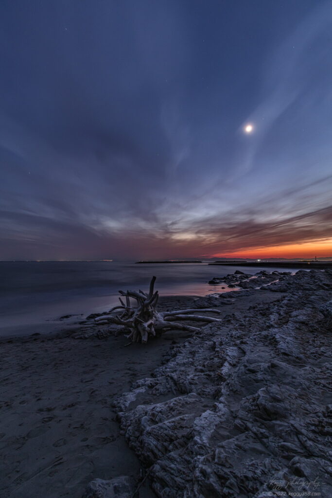 愛知県の知多にあるパワースポットのつぶて浦で夕焼けのマジックアワー・星景写真を撮影してきました。