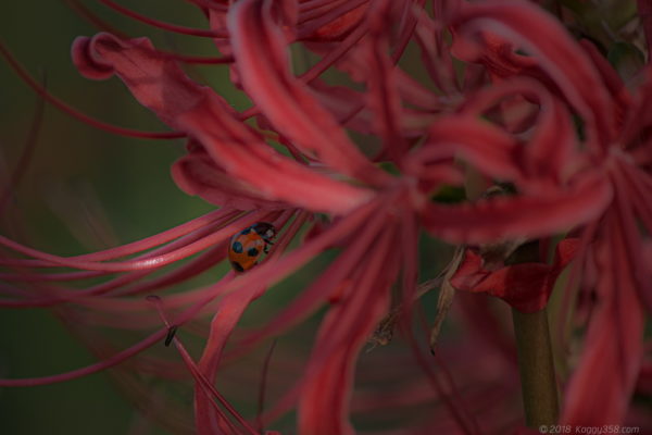 彼岸花にさりげなくてんとう虫がいたので撮影しました。