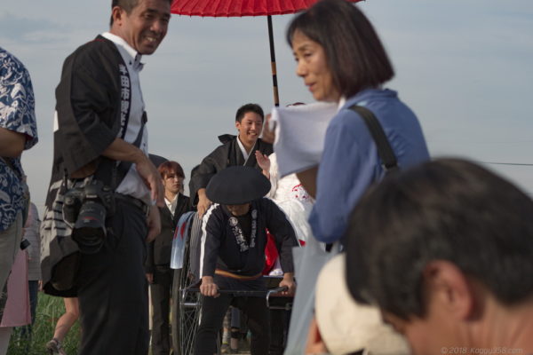 僕はどこで撮るか悩んだのですが、対岸から花嫁行列に沿って、歩きながら(ときたま走って)撮影をしていました。