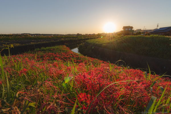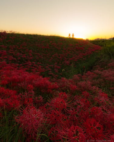 真っ赤に染まる彼岸花の絨毯と朝日の幻想的な時間は最高にきれいなわけです。