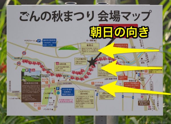 基本西側から朝日の向きに歩きながら撮影スポットをロケハンや撮影をしていけばOKな感じです。