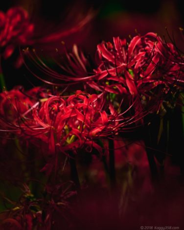 ローキーで彼岸花に光が当たってる状態で、背景が陰で暗い場所を選ぶと手軽に妖艶な写真が撮れます。