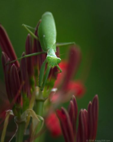 まだつぼみの彼岸花でしたが、カマキリの緑と彼岸花の赤が補色の関係なので映えくれます。