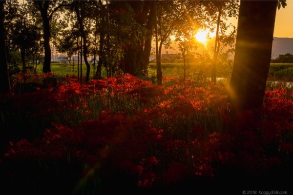 そして彼岸花を照らす光も明暗差が激しくなり、金色に輝いてくれます。