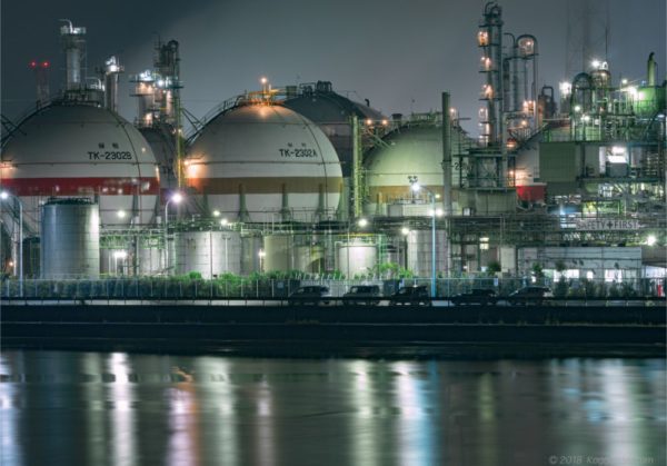 踊り場だと高い位置から工場群を撮影することが出来ます。