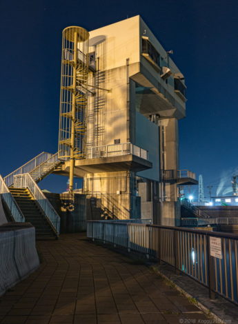 相生橋から少し更に歩くと、穴場の撮影スポットの稲葉翁記念公園があり水門から少し高い目線で工場夜景を撮ることも出来ます。