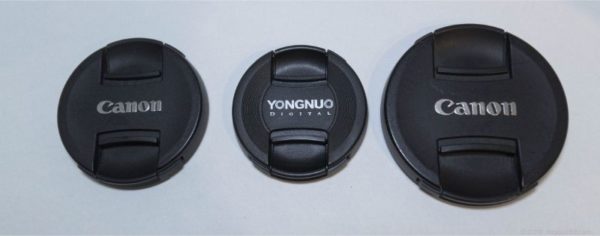 左から58mm(EF-S18-55mm F3.5-.5.6 IS II)、52mm(YONGNUO 35mm F2)、67mm( EF-S10-18mm F4.5-5.6 IS STM )のレンズキャップです。