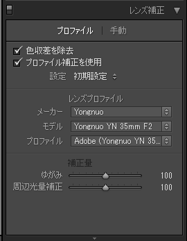 Ligtroomでレンズ補正のプロファイルで修正可能